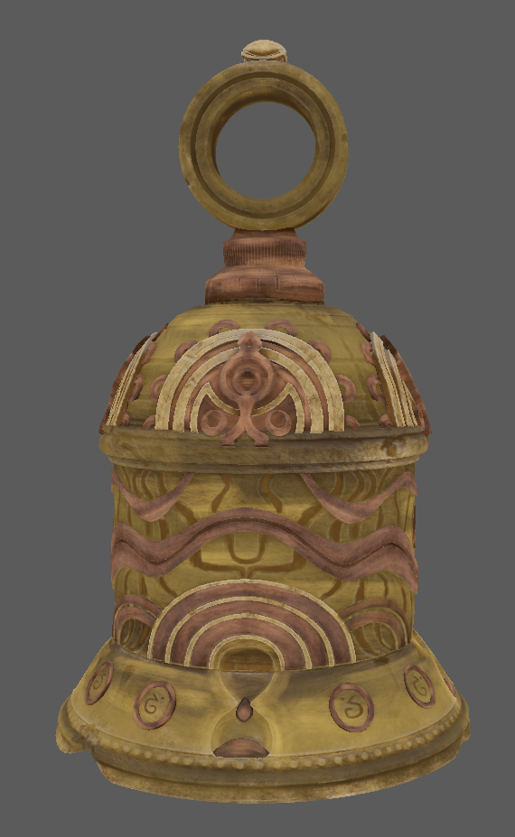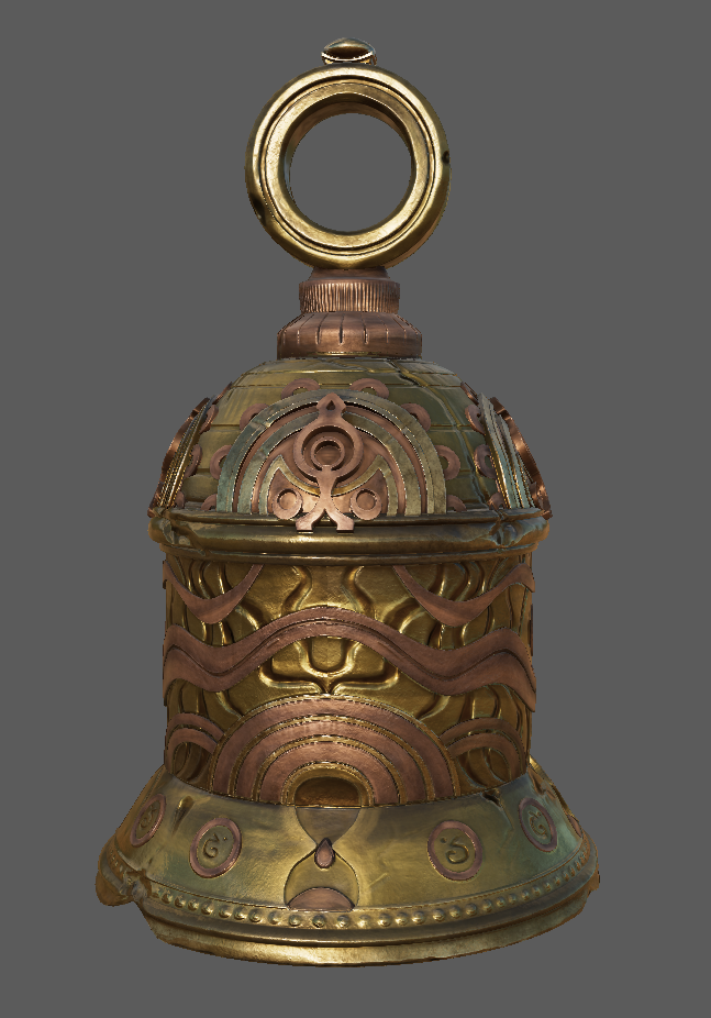 The Bell was hard surfaced modelled in Maya, and brought into Zbrush for a displacement pass on the engravings for extra detail and damage.