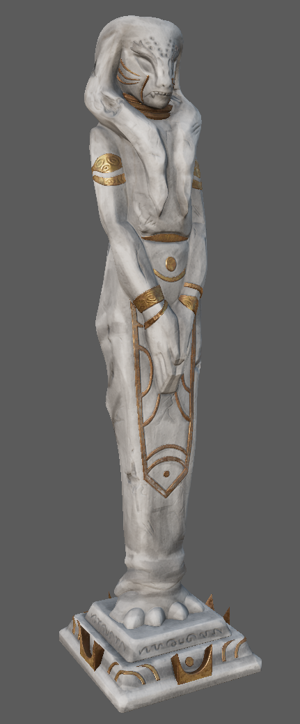I modelled several setpieces and props that I then took into assembly for the Temple Exterior. This includes the Ruin statue, Prop door, Brazier, Ruin Stairs, and the Temple Wall which was broken down into sub-assets for a more modular assembly.